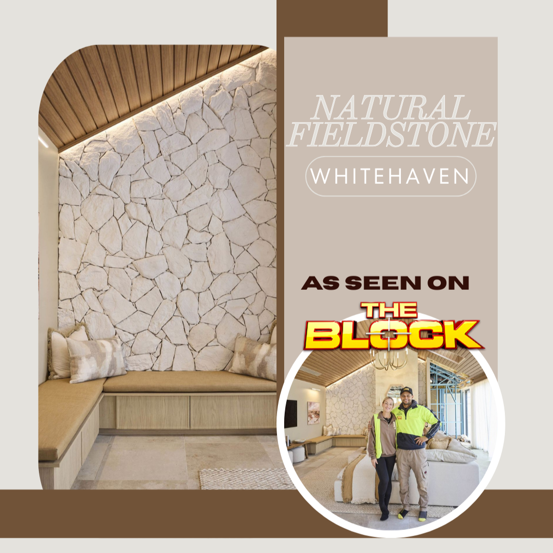 The Natural Fieldstone selection in the colour Whitehaven, was recently featured in a room reveal on “The Block”
